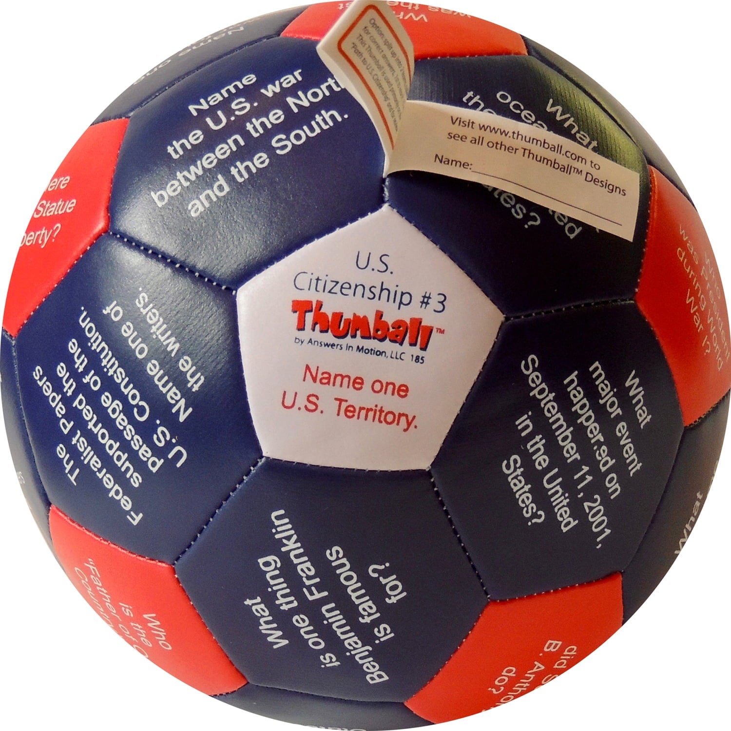 Toss, catch, and learn! The Us U.S. Citizenship Thumball 3 pc is the ultimate playful learning aid for youngsters keen on mastering U.S. civics! Designed in vibrant red, white, and blue, each of the three 6-inch softballs contains 100 essential civics questions to prepare them for brilliance in citizenship quizzes. Gather around, throw the ball, and wherever your thumb lands, get ready to answer and learn!