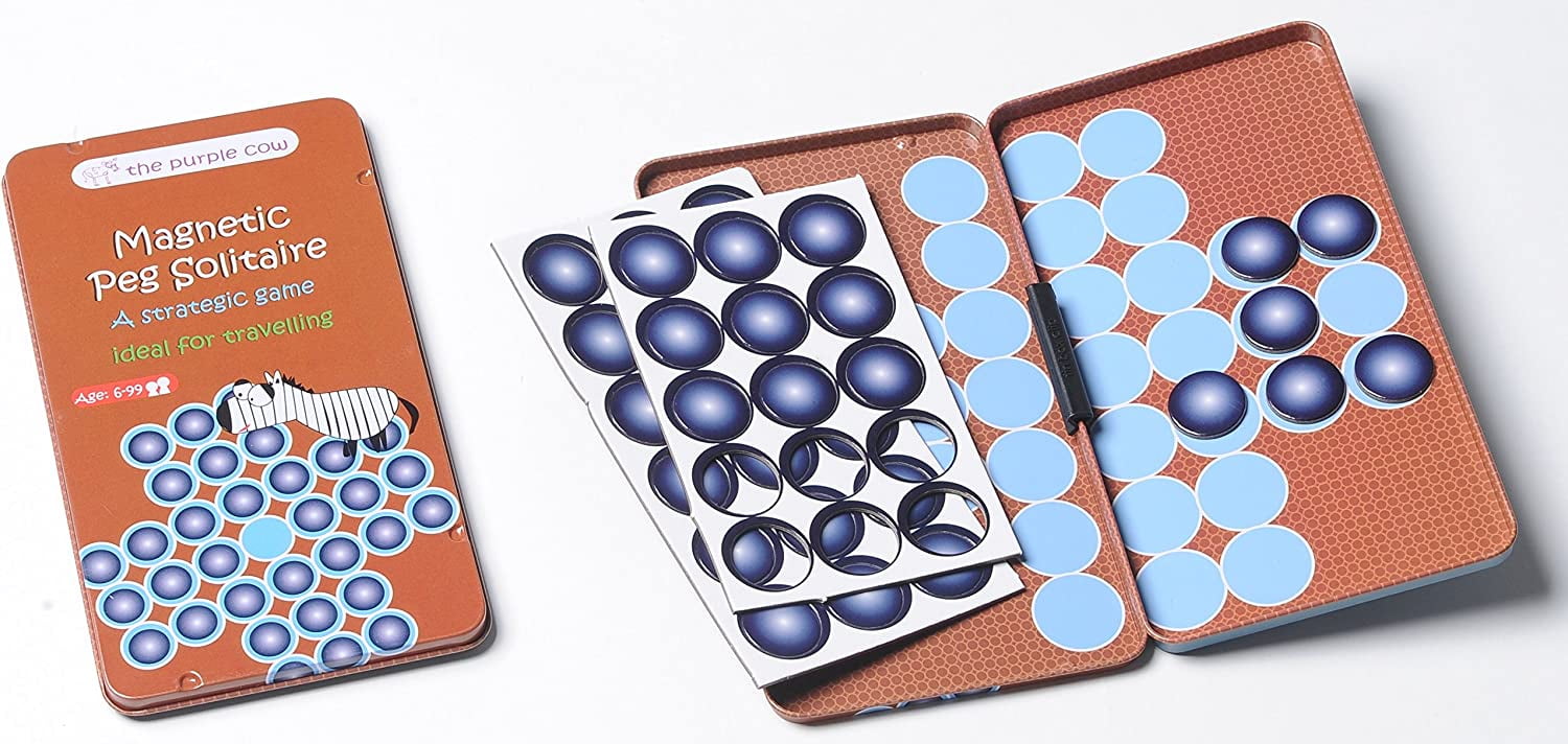 Get ready to climb, slide, and laugh with the Purple Cow To Go Snakes & Ladders! This travel-friendly board game turns any road trip, flight, or rainy day into an exhilarating race to the top. Avoid those sneaky snakes and climb ladders to victory right from your seat. Its magnetic pieces cling to the chic, slim tin case, ensuring a smooth game play no matter where you find yourself playing.