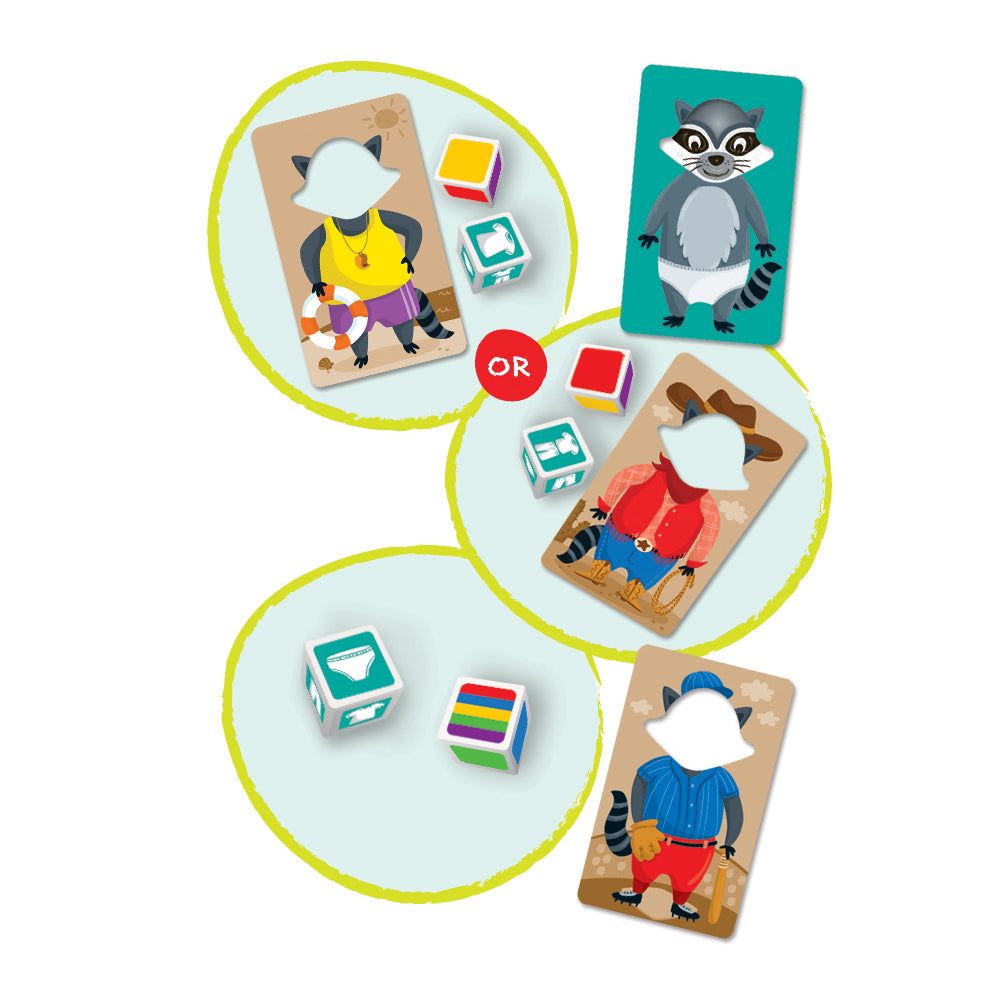 Roll the dice, match the costumes, and watch out for the undies! Get ready for a hilarious wardrobe scramble with the Raccoon Rumpus game. Tiny tots will giggle with delight as they help the masked raccoon critters get dressed in silly outfits. Perfect for engaging young minds, this game combines learning with tons of giggles!