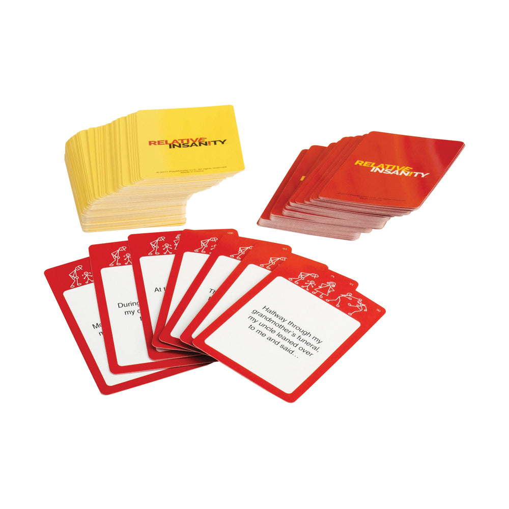 Prepare for a giggle fest of epic proportions as you dive into the wild and wacky world of Relative Insanity, a riotous party card game inspired by comedian Jeff Foxworthy. In this game, players read a setup card aloud, setting the scene for some outrageous family scenarios. Then, everyone else chooses one of their punch line cards to deliver the funniest, most rib-tickling conclusion. Perfect for family game nights, parties, and gatherings, Relative Insanity ensures a different, uproarious experience every time you play.