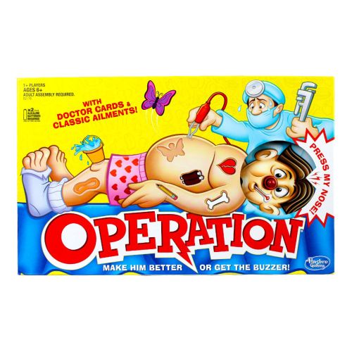 Light up the holiday season with the Rudolph the Red-Nosed Reindeer Operation 60th Anniversary Edition! It’s time to wield your surgical tools to help Santa and friends operate on Bumble the Abominable Snow Monster. Navigate Bumble’s cavities to cure his chilly ailments without tripping the buzzer! Watch Rudolph’s nose twinkle and hear the roar of Bumble when things go awry. It’s a festive race against the clock! Are you ready to patch up the Bumble and bring joy back to Christmas?