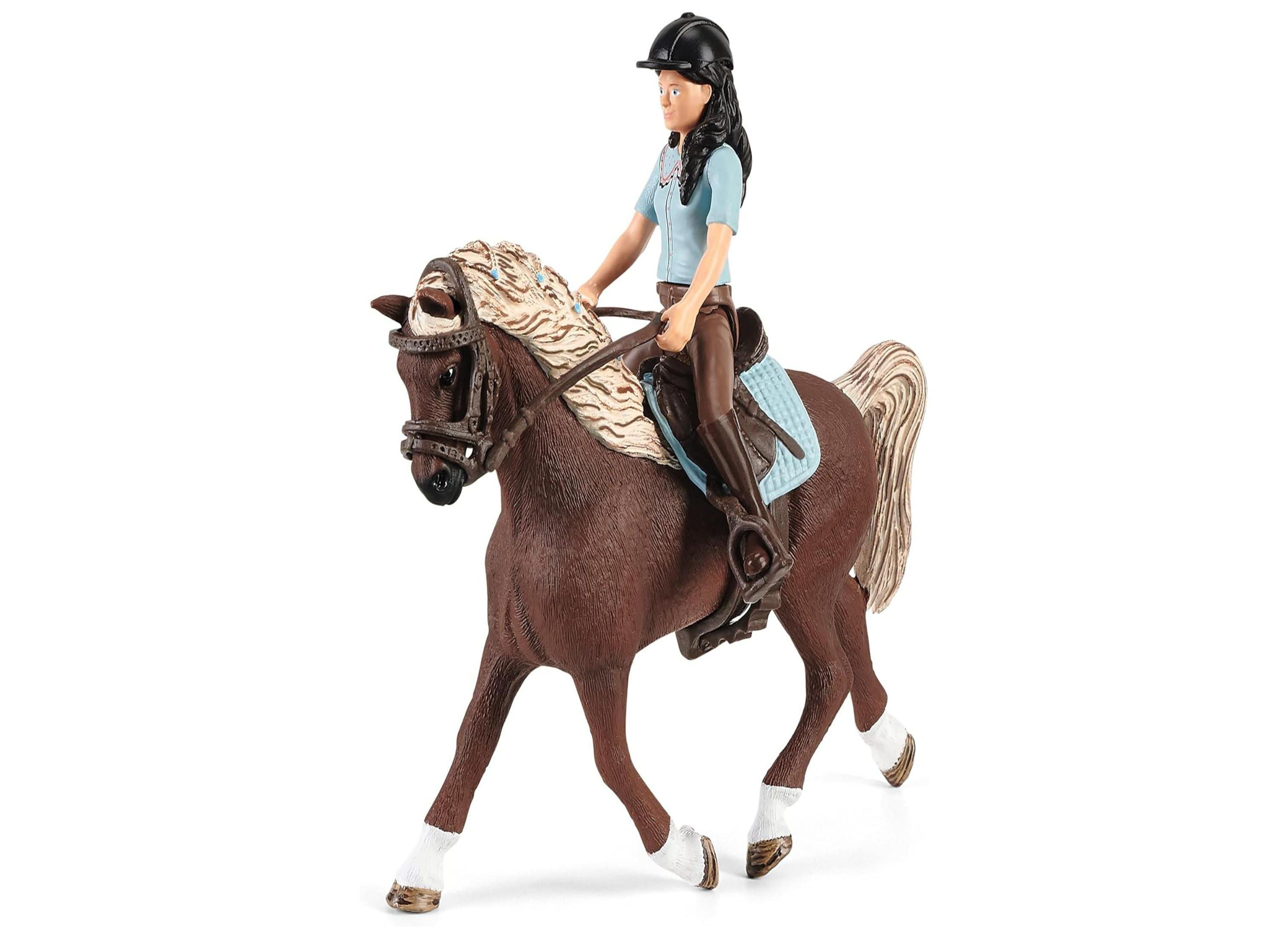 – A Holsteiner mare figure and a movable Emily figurine that can sit, stand, and grip.