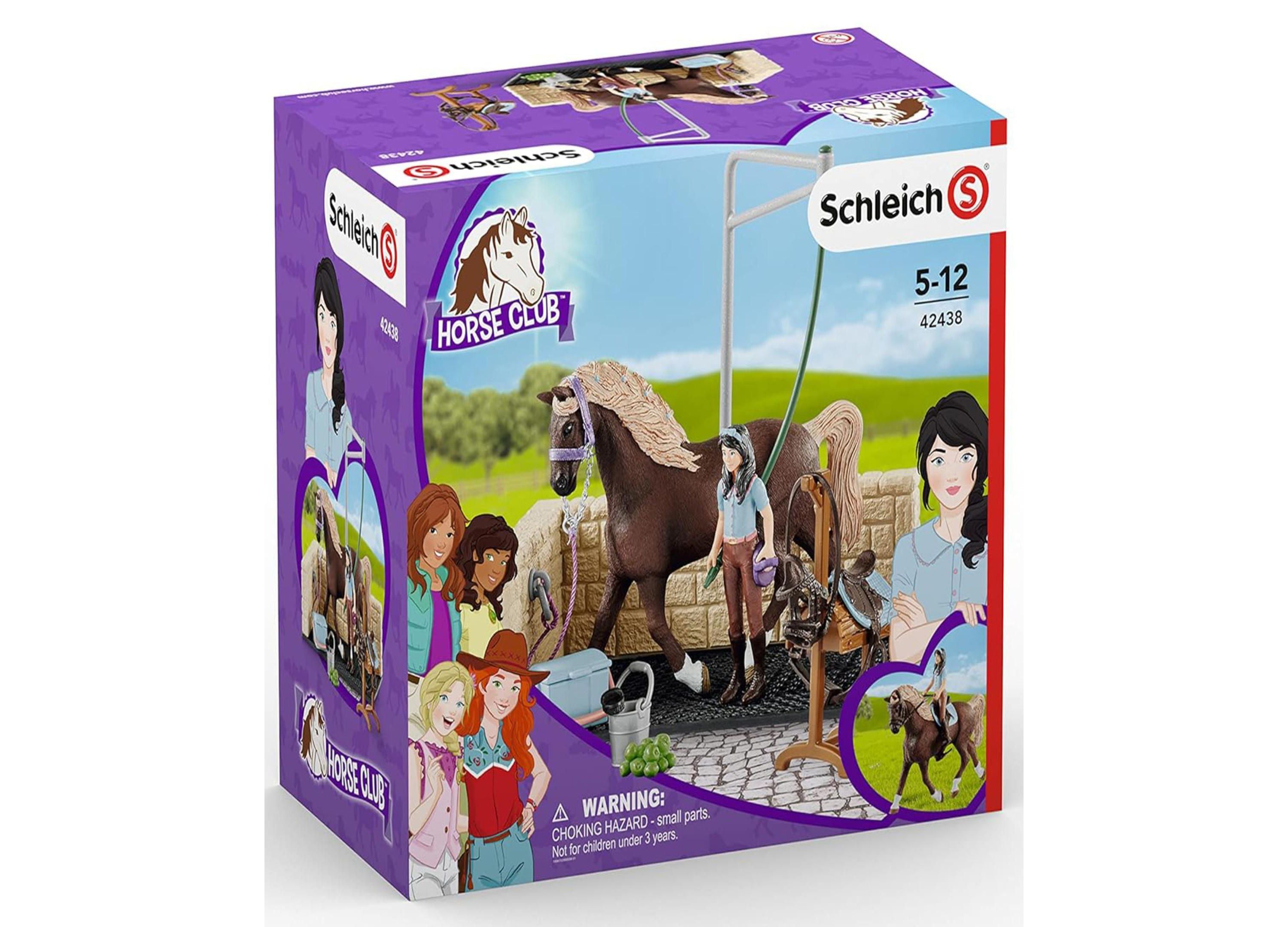 Giddy up and gallop into the enchanting world of the Schleich Horse Club: Washing Area W/ Emily & Luna – 19 Piece Playset, where imagination meets grooming fun! This meticulously detailed playset allows young horse enthusiasts to recreate the experience of caring for a horse. Watch as Emily, the fully movable figurine, tends to her beautiful Holsteiner mare, Luna, using a variety of grooming tools and accessories included in this comprehensive set. Perfect for enhancing fine motor skills and fostering a love for animals, this playset promises endless hours of creative play.