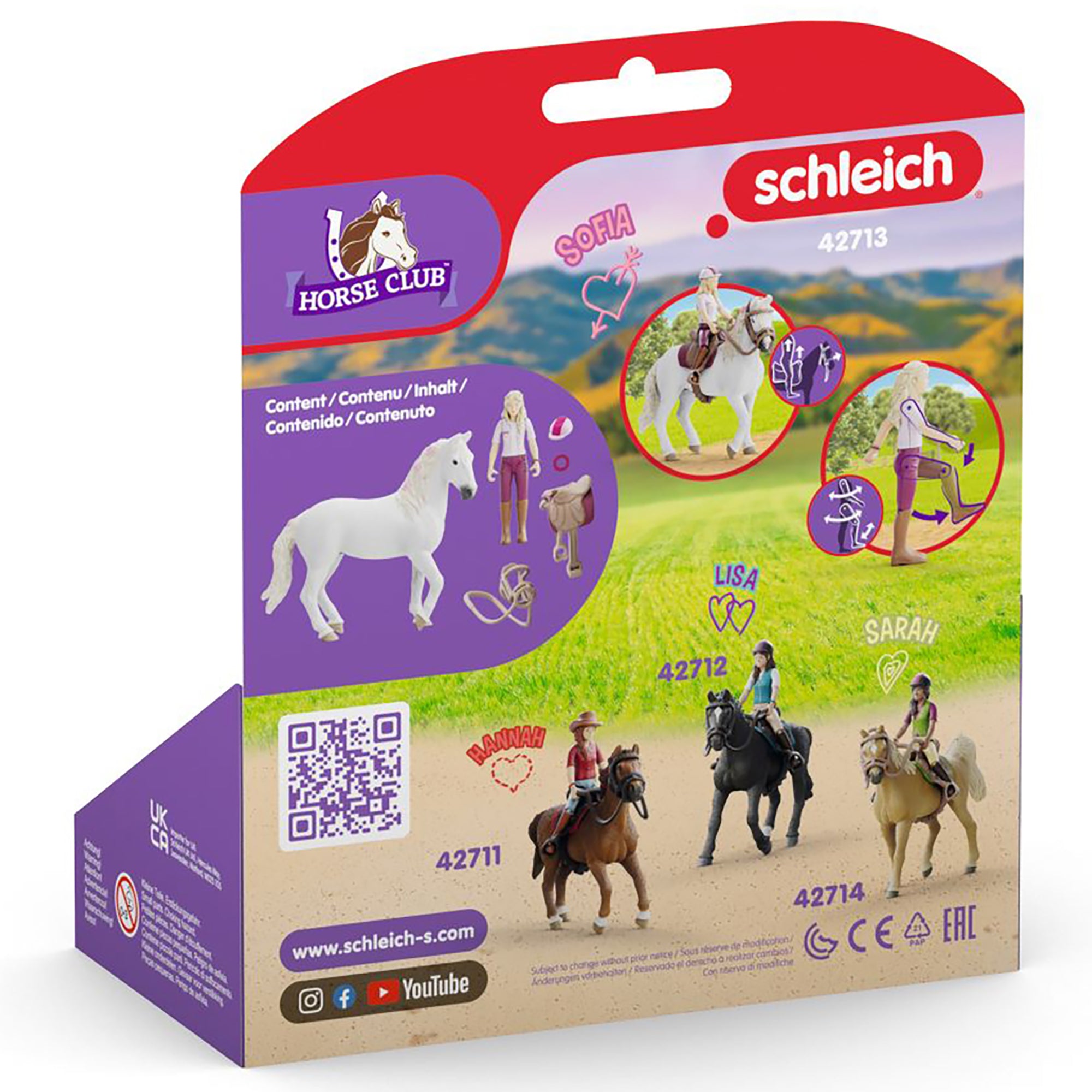 Gallop into adventure with the Schleich Horse Club Sofia & Blossom 6pc Playset, featuring an articulated rider and a majestic white mare! This enchanting set invites young equestrians to create their own stories as Sofia, the fully movable rider, and Blossom, her elegant Arabian mare, explore scenic trails.