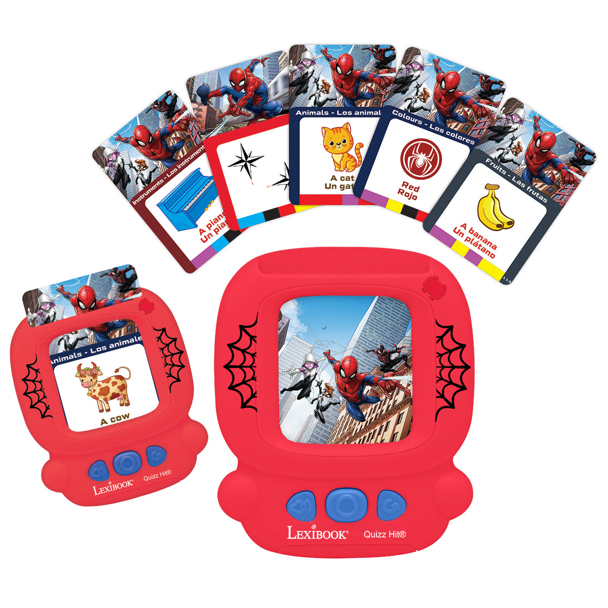 Swing into action with the Spider-Man Bilingual Interactive Card Reader! This pocket-sized dynamo is your little superhero’s gateway to mastering new vocabulary in both English and Spanish. Just select a card, insert, and let the learning adventure begin with quizzes and beautifully illustrated words that bring learning to life.