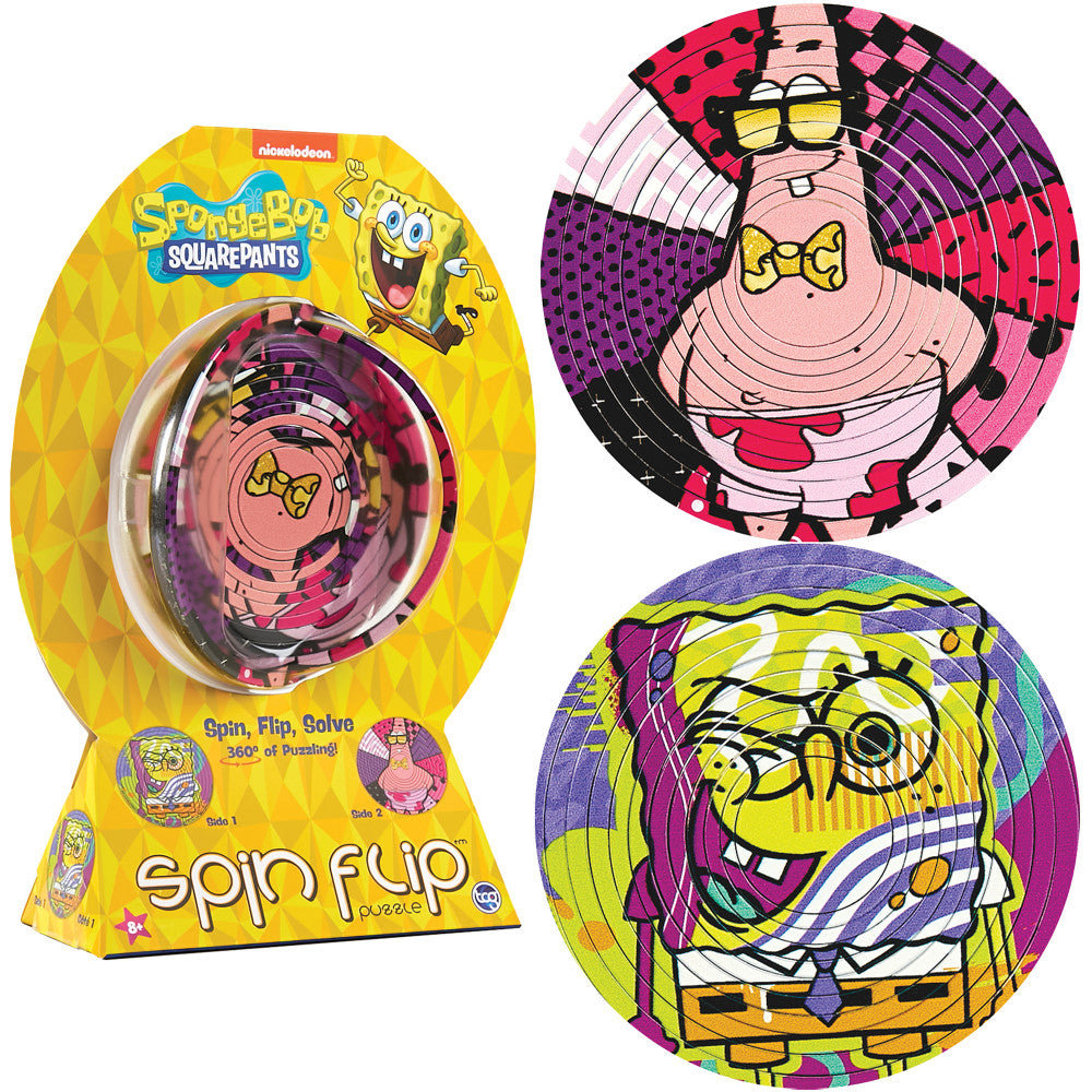 The SpongeBob Spin Flip Double-Sided Puzzle features: