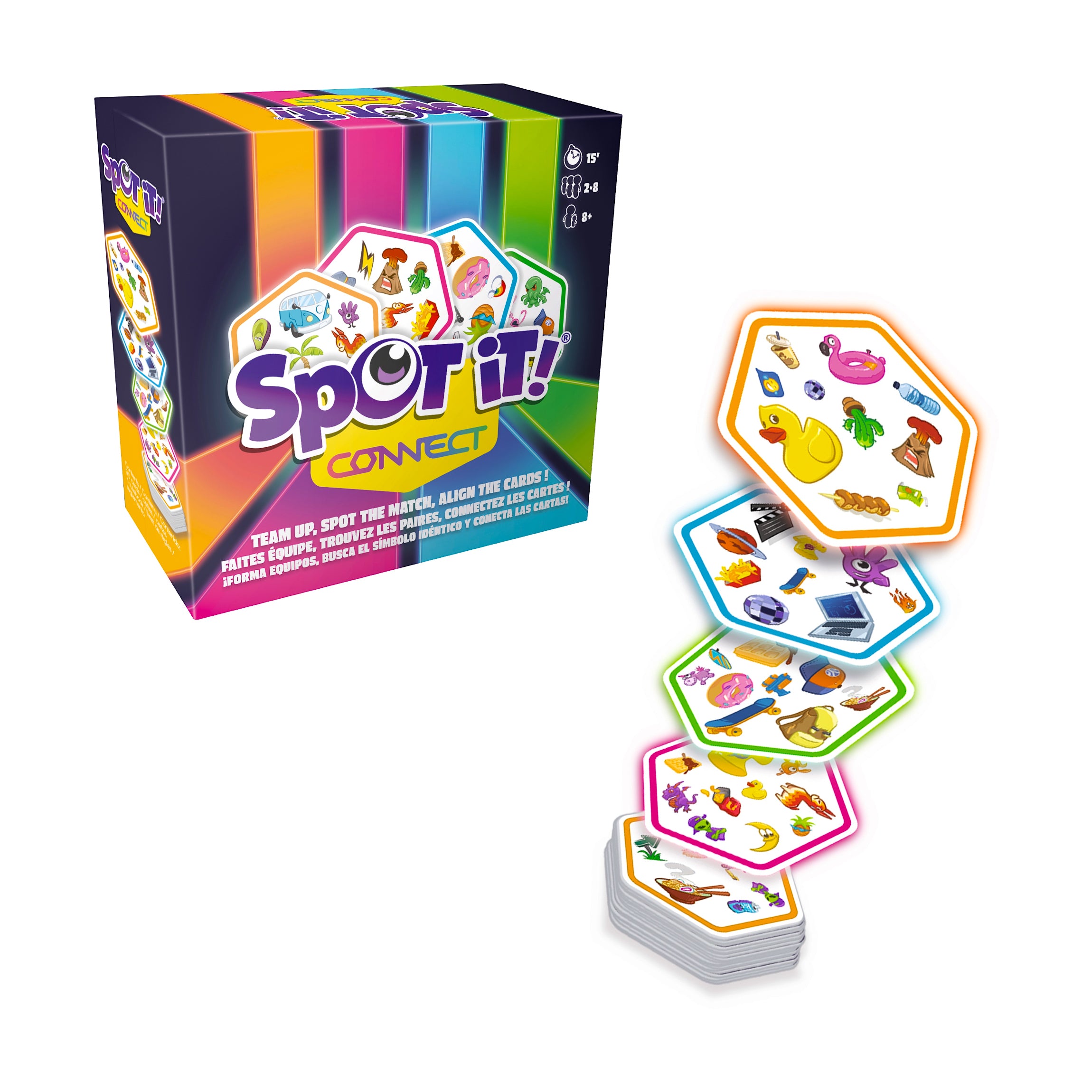 Get ready to race against time with Spot it! Connect, where sharp eyes and quick hands lead to victory! Gather your friends or family for a fun, frantic matching game that keeps everyone on their toes. Perfect for 2-8 players, this game is a riot of laughs and competitive spirit.