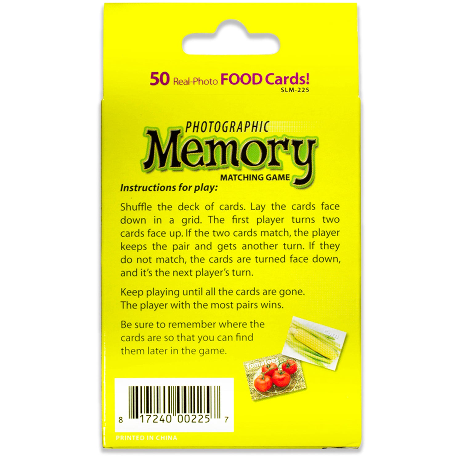 Get ready to sharpen those little minds with the Stages Learning Materials Photographic Memory Matching Game, Food, Pack of 3! This delightful trio of memory games features colorful and realistic photographs of scrumptious foods that appeal to both sight and memory skills. Perfect for family game night or a fun school activity, these games ensure engaging educational play without the need for reading. Designed for 2 to 6 players, each pack contains three identical card games, making it easy to keep the fun going at multiple stations or to replace a lost set!