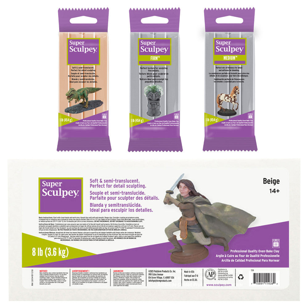 The Super Sculpey Polymer Clay – Beige 8 lb Pack features: