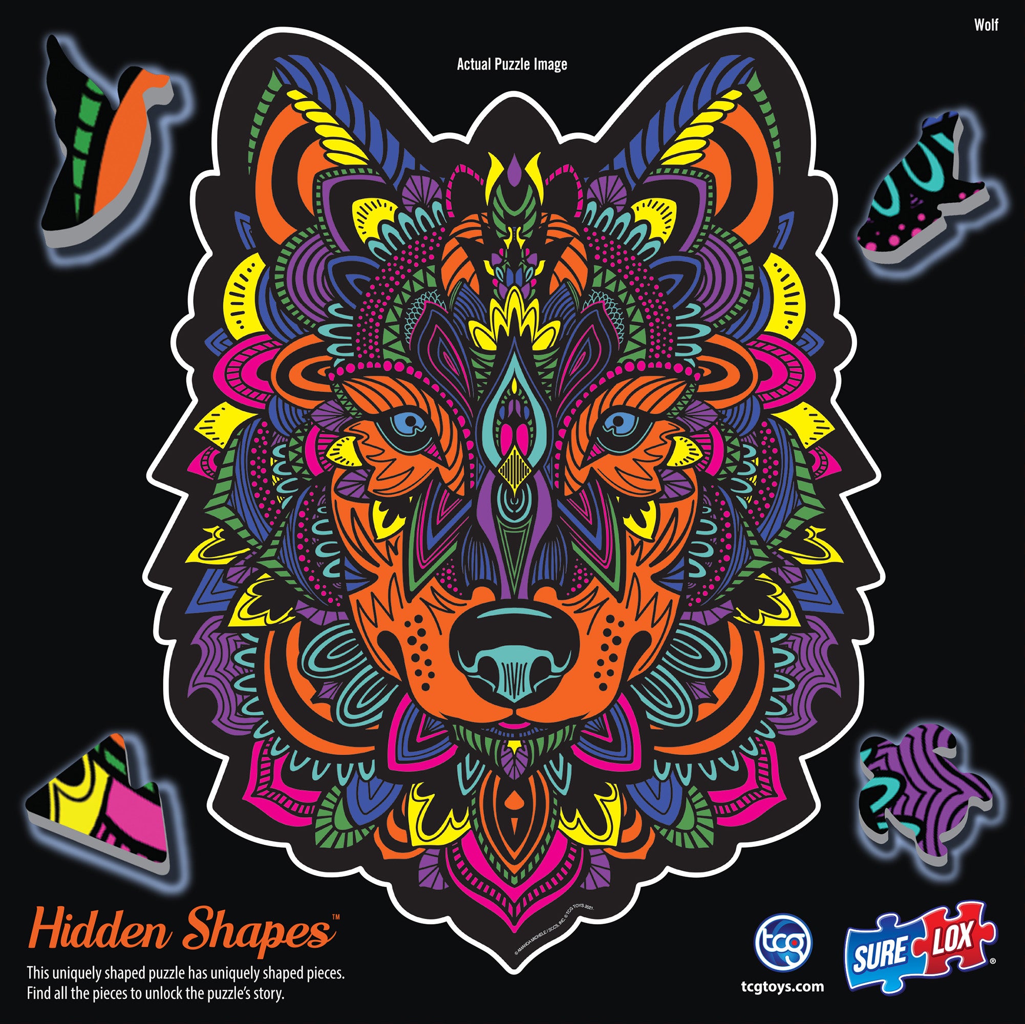 The Sure-Lox Hidden Shapes Wolf Puzzle features: