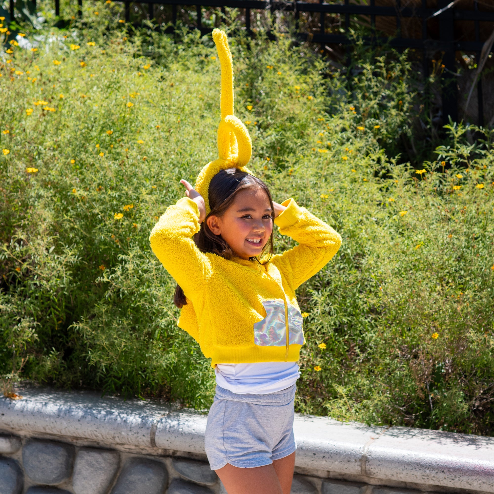 Our Teletubbies Po antenna headband is designed for a perfect fit. Made with ultra-soft sherpa fabric, and bendable wire. Not only is this headband a fashionable statement, but it also makes a fantastic gift for Teletubbies enthusiasts. Crafted with durability in mind, our Teletubbies headband is built to last. It maintains its softness and vibrant colors even with frequent use, guaranteeing long-lasting enjoyment.