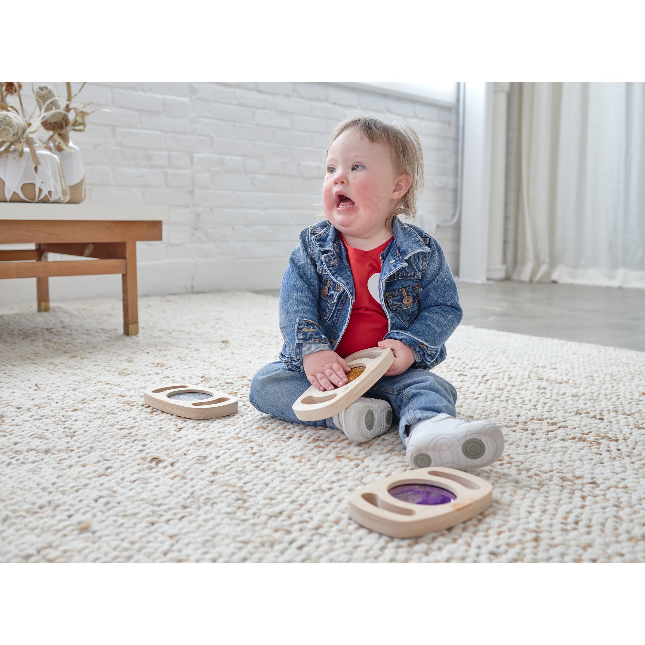 Prepare for a glimmering adventure with the TickiT Easy Hold Glitter Panels – Set of 3 in Silver, Gold & Purple. These captivating panels are designed to stimulate sensory development and imagination in children from 1 year and up. Each panel is filled with swirling, shimmering glitter in eye-catching colors that dance and move when tilted or shaken. Perfect for sensory play, these panels can be held up to the light to enhance the glitter’s sparkle or used with an LED light panel for an illuminated effect.