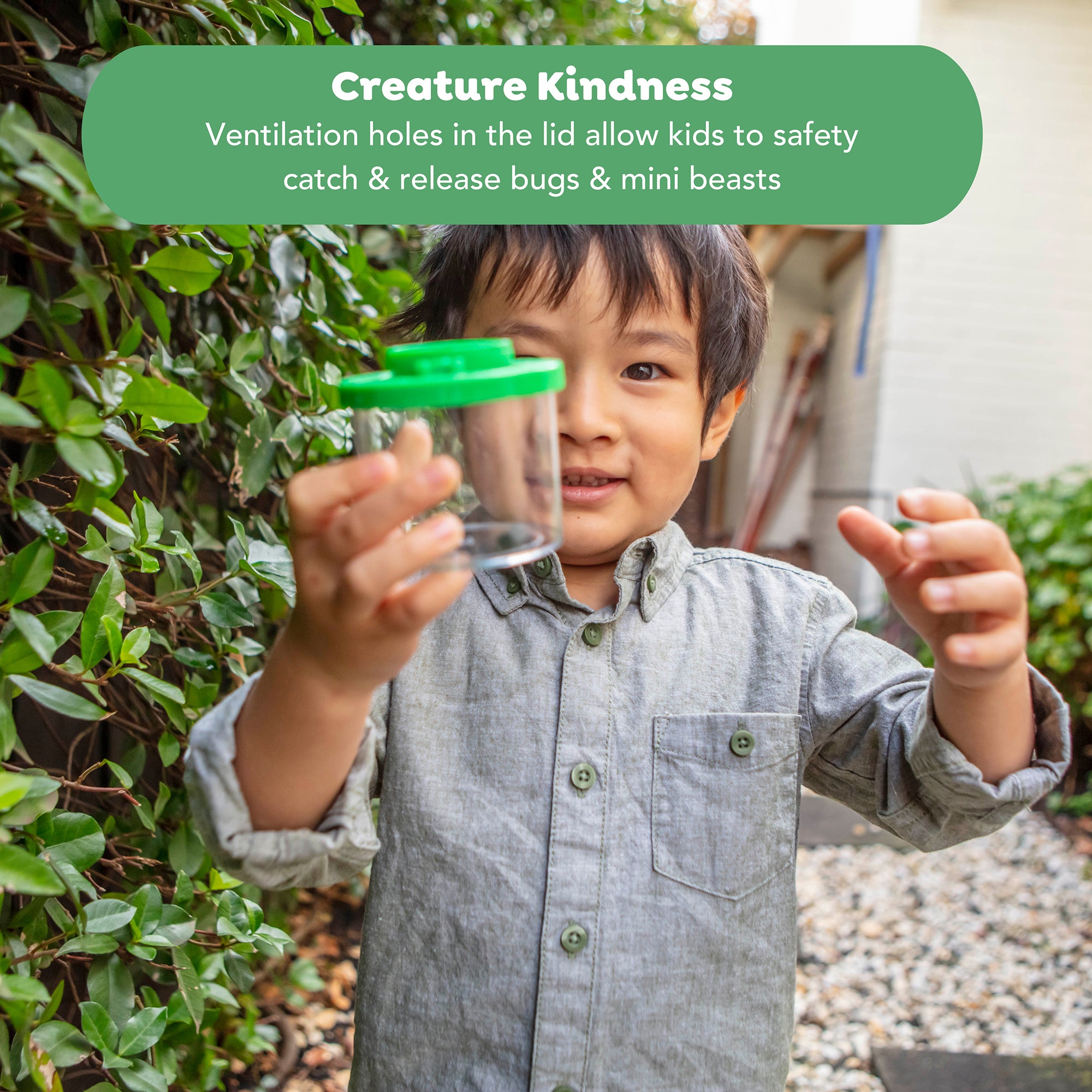 Dual magnification lid (2x and 5x) for up-close bug viewing