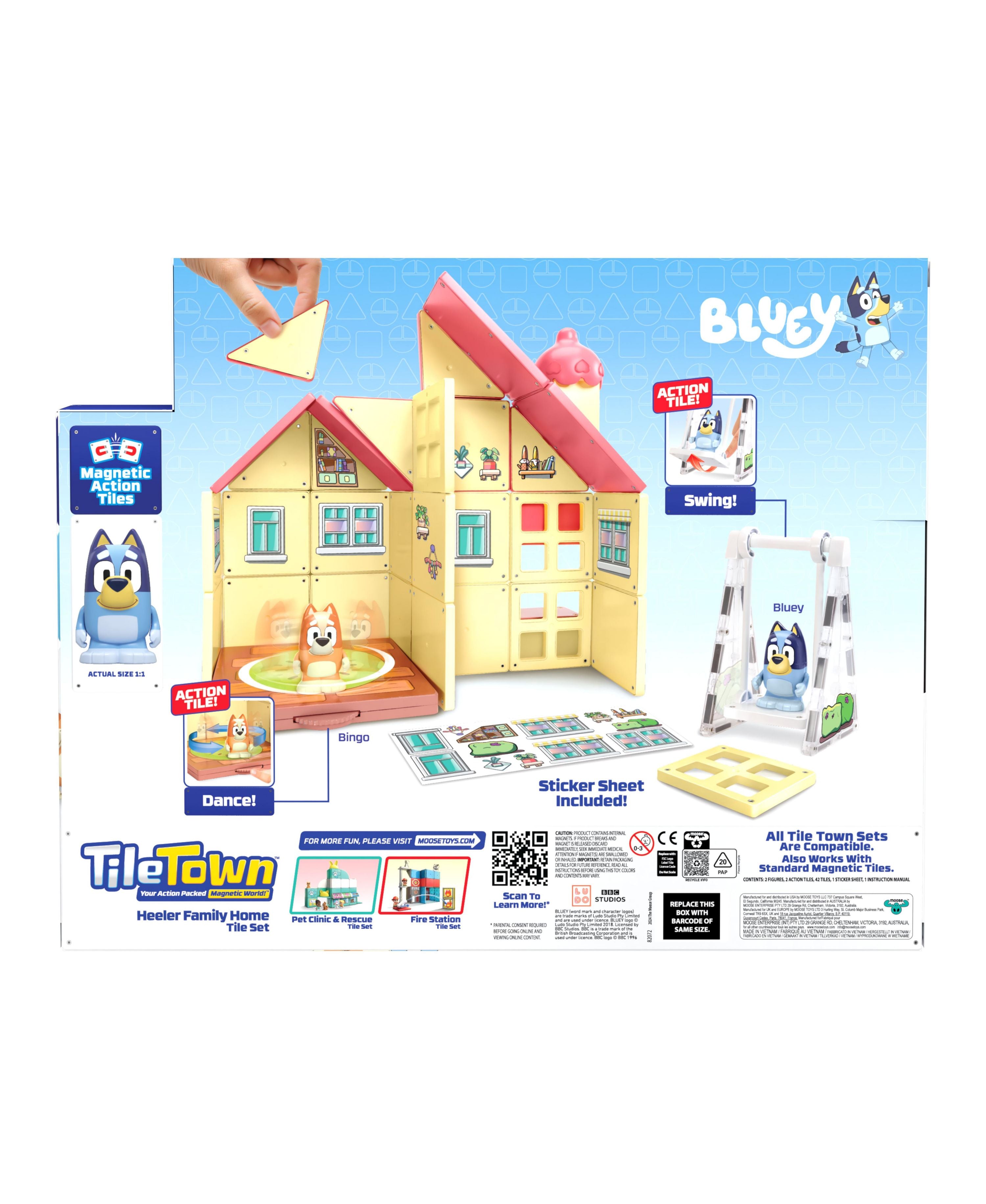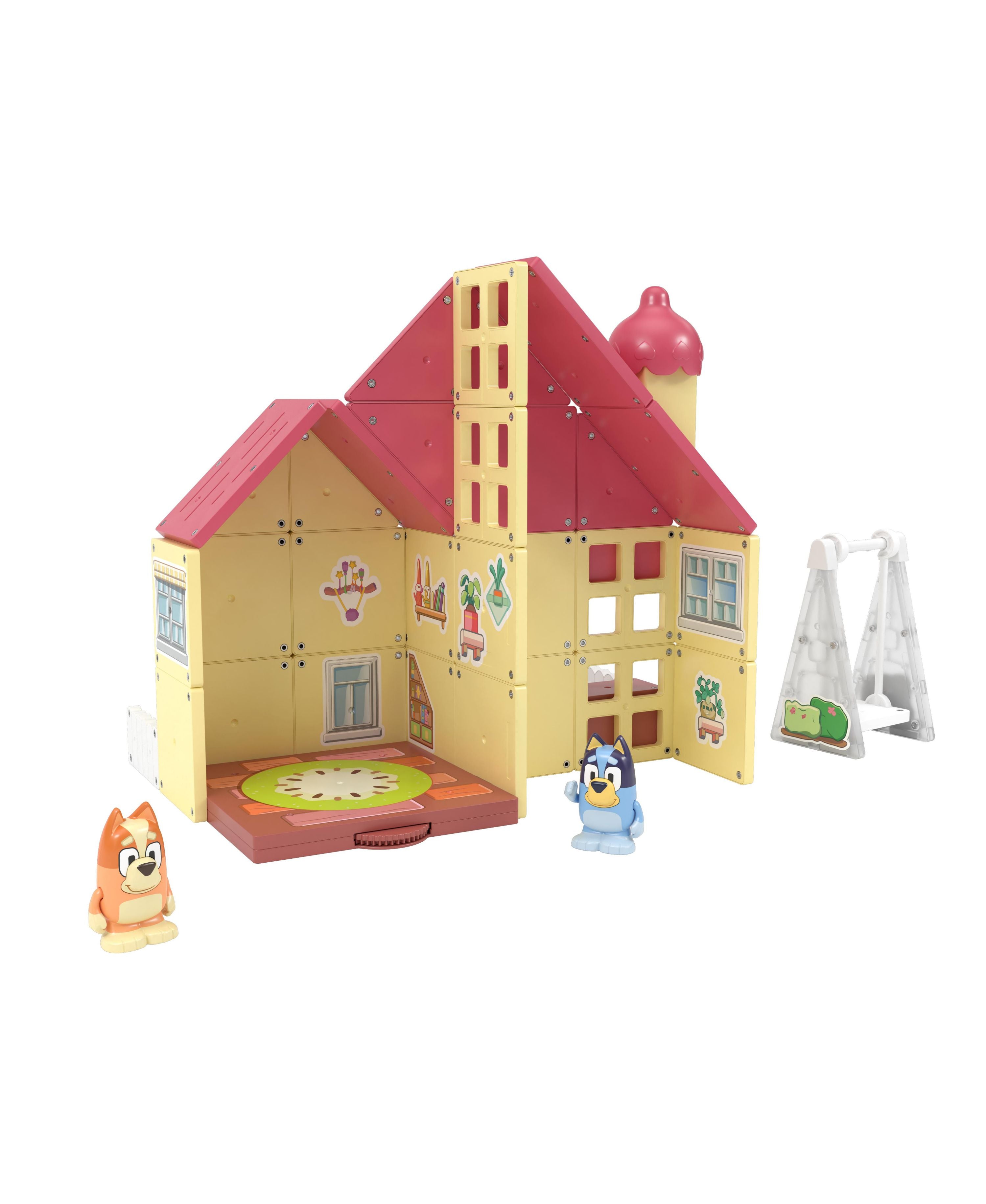 The Tile Town Bluey Heeler Home Magnetic Tiles Playset features: