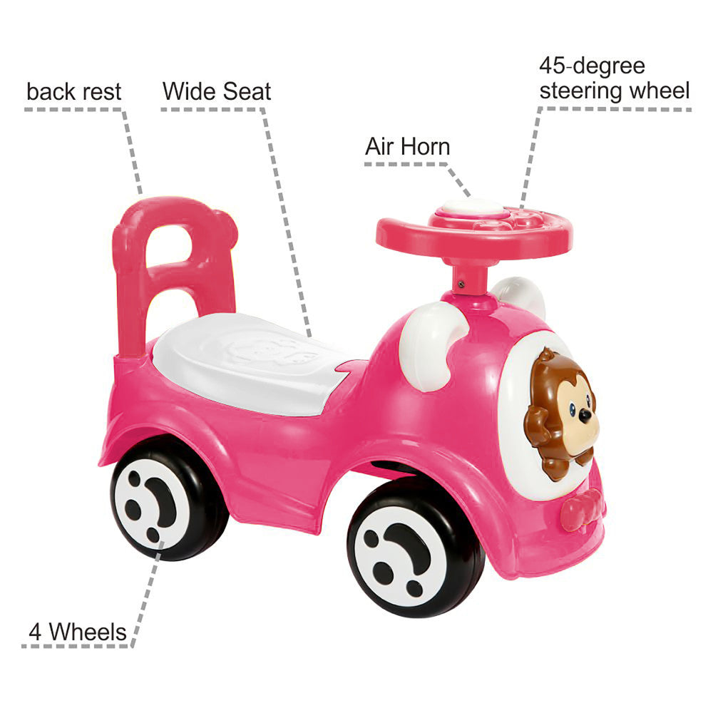 Timate – Push & Ride Racer – Pink & Monkey – Foot-To-Floor Ride-On