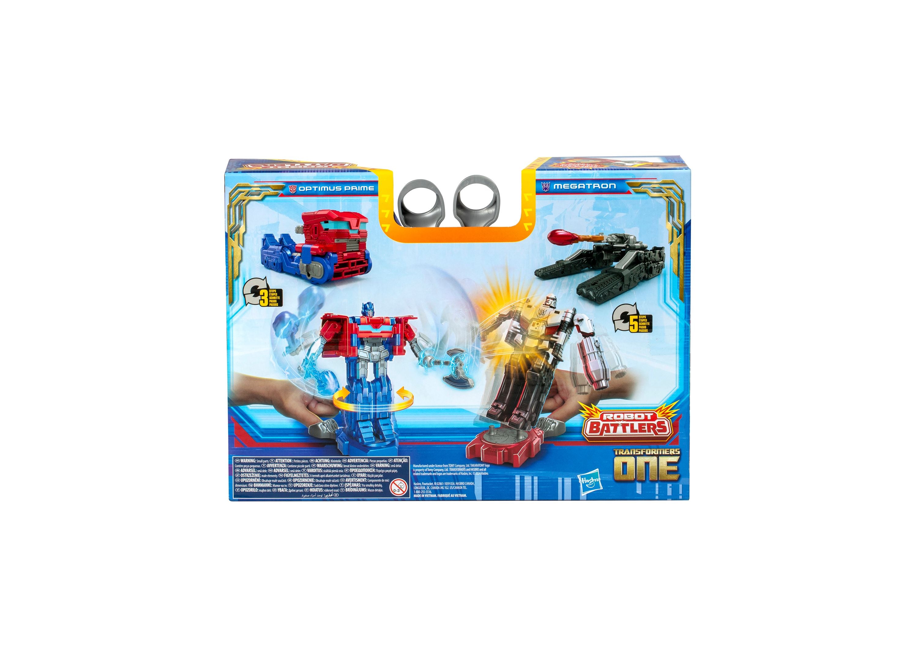 Transform the playtime with the Transformers One Robot Battlers 2-Pack Action Figure featuring iconic characters Optimus Prime and Megatron! Watch as these articulated figures switch from fearsome robots to powerful vehicles; Optimus Prime transforms into a semi-truck in three easy steps, and Megatron becomes a tank in five steps. Perfect for epic battles, the set includes dynamic Battle Bases with finger slots for interactive play.