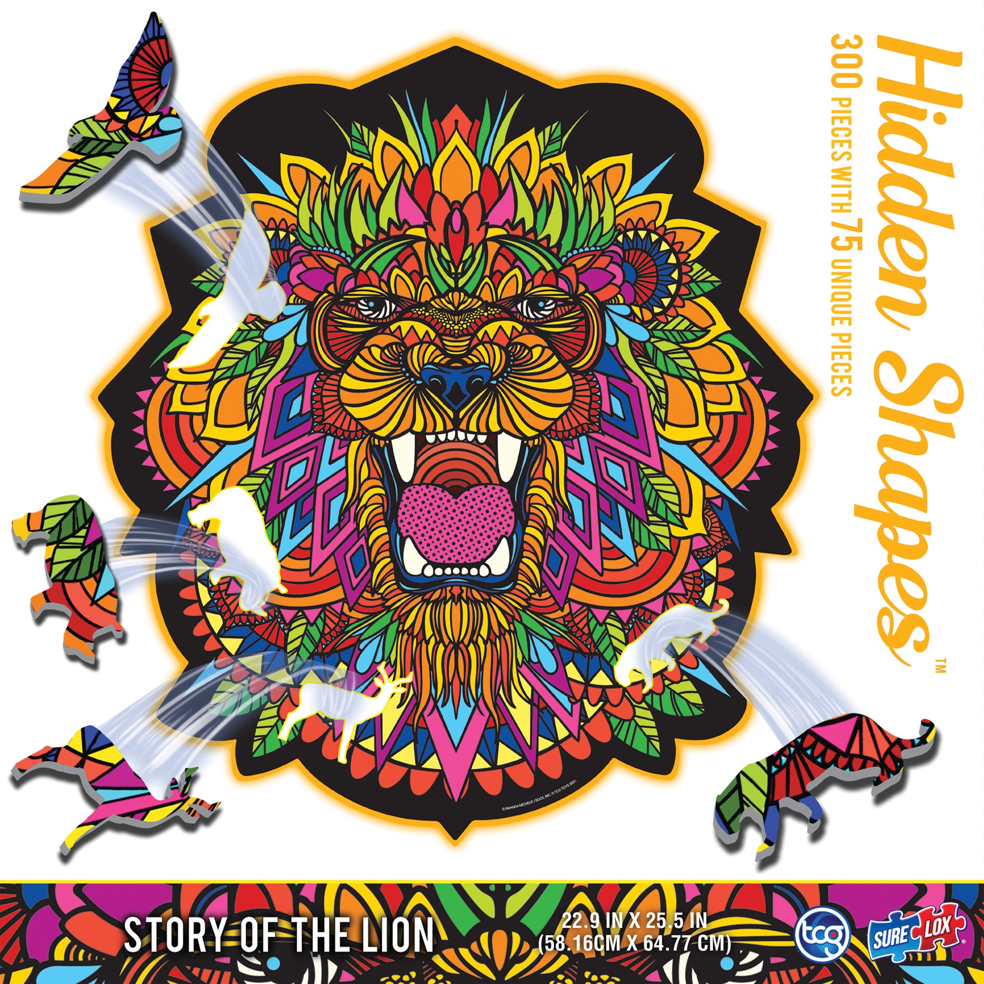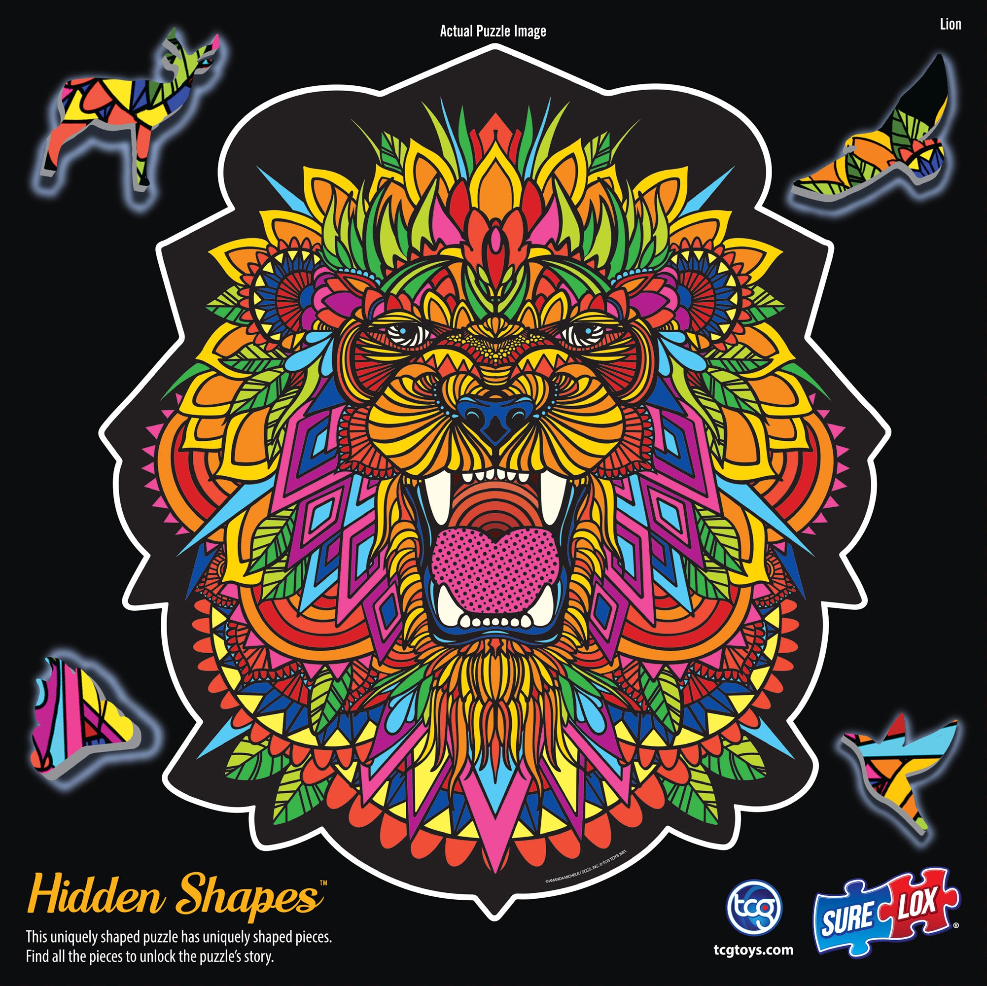 The HIDDEN SHAPES PUZZLE – LION features: