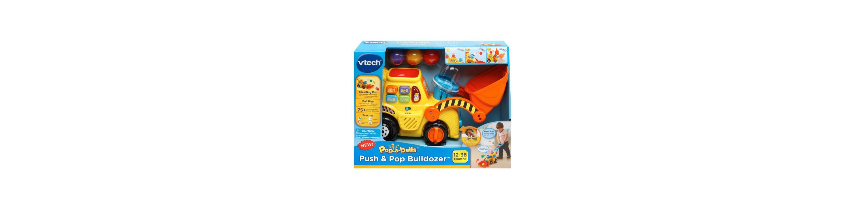 Watch the excitement unload with the VTech Pop-a-Balls Push & Pop Bulldozer, where fun and learning get rolled into one! Your little builder can push this vibrant bulldozer to make colorful balls pop and soar from the stack into the bucket, excavating smiles and giggles. Suitable for tiny hands, it promotes coordination with delightful sounds and light-up buttons that teach colors and numbers for a foundation of early education.