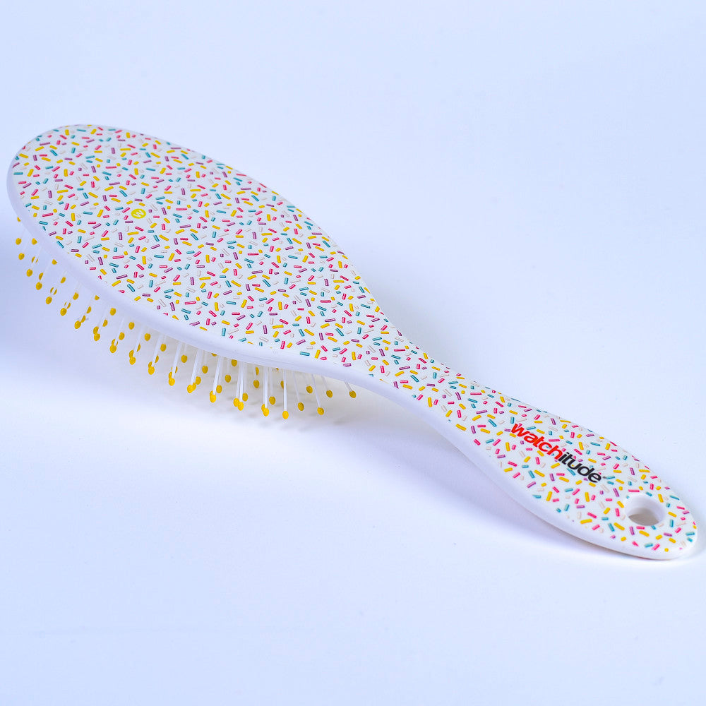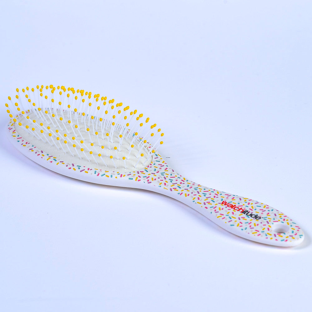 Twirl, flick, and swish! The Watchitude: Scented Hair Brush – Ice Cream Cake – Kids Vanilla Scented Stylish Brush transforms everyday hair brushing into a delightful sensory adventure. Adorned with enchanting designs of unicorns and sparkles, this vibrant brush makes managing messy locks a breeze with its innovative bristles designed for both wet and dry hair. The sweet vanilla scent lets the air whisper dessert stories with every brush stroke, creating a playful experience for trendy youngsters.