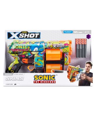 Zoom, spin, and strike! The X-Shot Zuru Sonic Skins, 12 Darts, turns backyard battles into epic adventures with its Sonic-inspired visuals and high-performance dart blasting action. This dynamic blaster not only comes equipped with double trouble rotating barrels but also the power to hit targets from up to 90 feet away. Ready, set, blast your way to victory with your favorite Sonic characters!