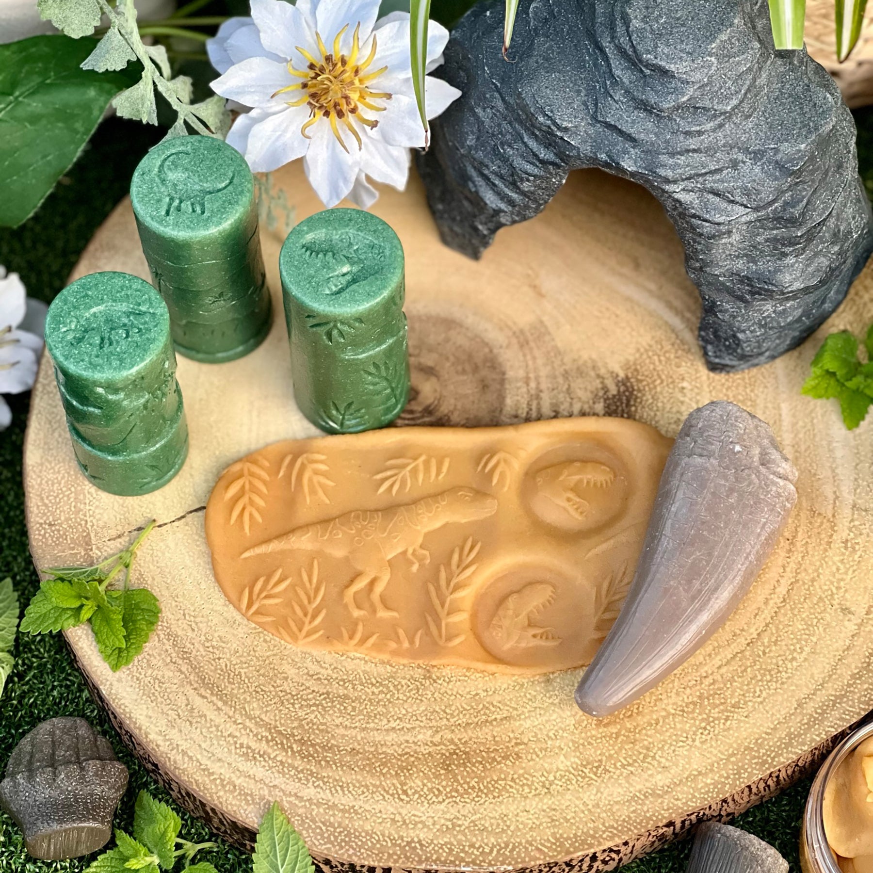 The Yellow Door Let’s Roll Dinosaurs Set includes:
