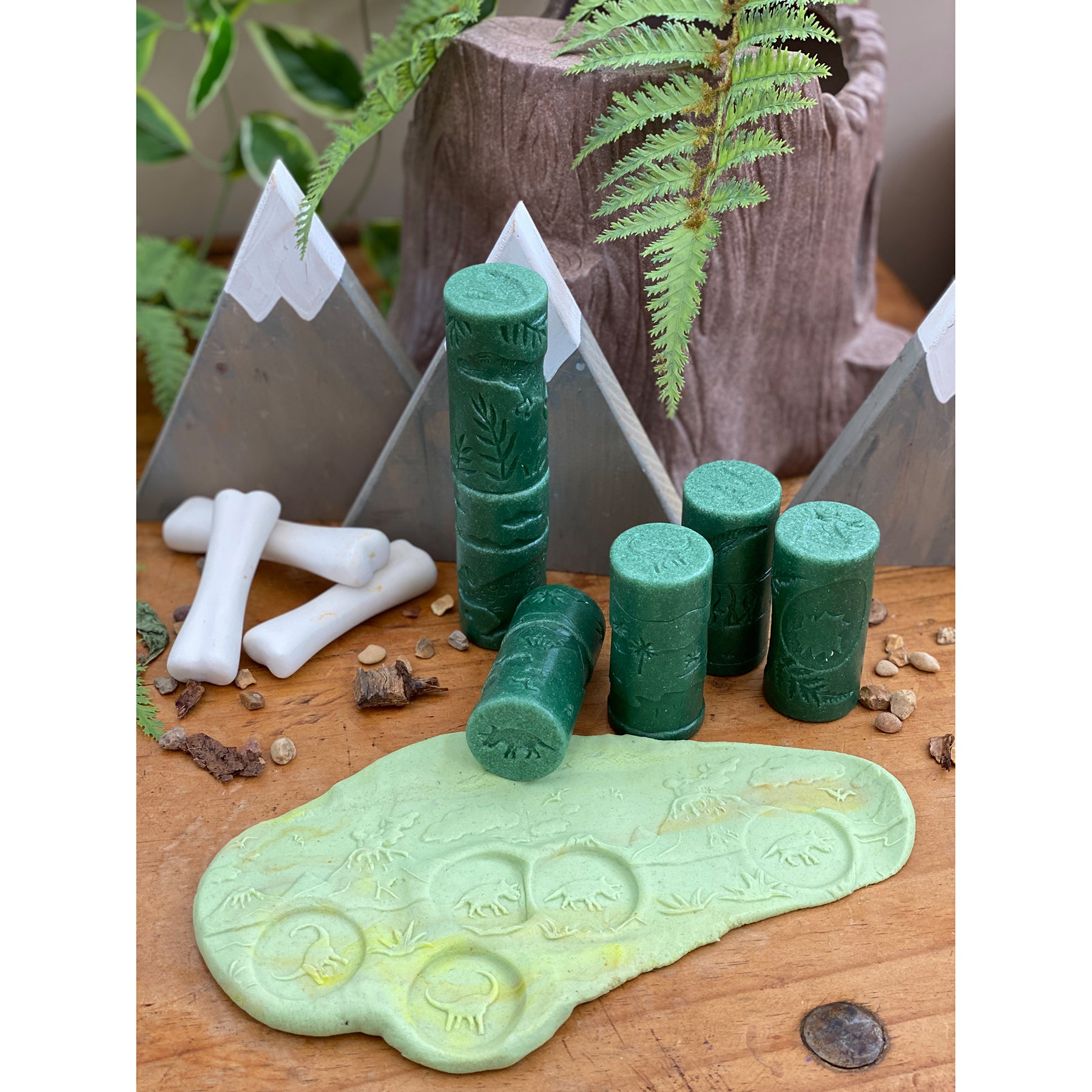 Stomp and roar through time with the Yellow Door Let’s Roll Dinosaurs – Set of 6! These dynamic dinosaur-themed rollers are the perfect tool for tiny paleontologists to create their own prehistoric worlds in play dough, clay, or sand. Each roller is fabulously detailed, allowing kids to emboss scenes straight out of the Mesozoic era, from volcanic landscapes to dense, fern-covered plains. It’s a hands-on adventure that sparks joy and enhances dino-knowledge at every turn!