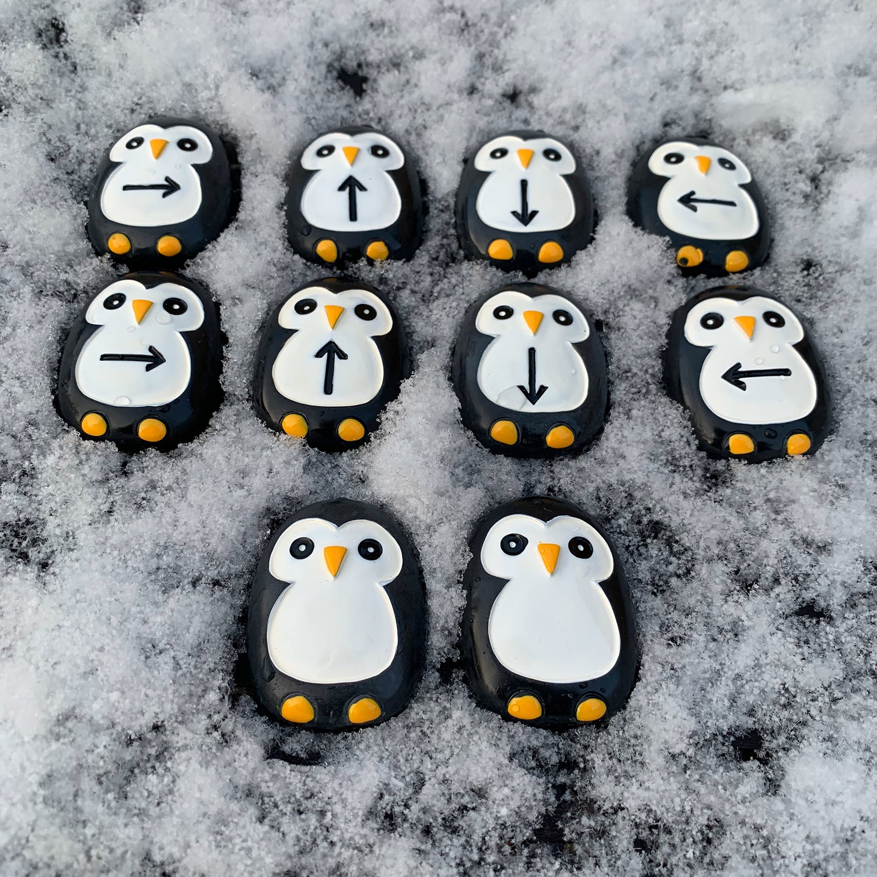 Slide, align, and learn! The Yellow Door Pre-Coding Penguin Stones, Set of 18 transforms basic play into a fun and educational coding adventure. Perfectly sized for little hands, these robust stone penguins inspire the development of pre-coding skills like sequencing, spatial reasoning, and directional understanding. Designed to endure play in ice, sand, or anywhere outdoors, these playful pals are ready for any learning expedition!