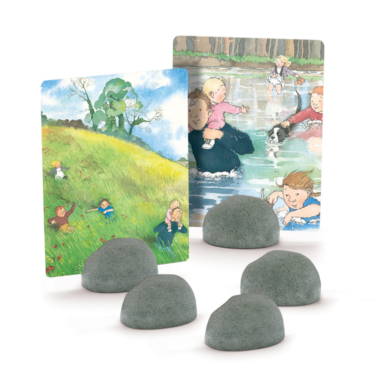 Spark your child’s creative narrative with the Yellow Door Stand-it-Stones, Set of 5! Fashioned from a unique stone and resin mix, these sturdy cardholders are built to last. Whether setting the stage for a mud-pie bake-off or anchoring story cards for whimsical tales, these stones transform any environment into a playground of imagination. They’re perfectly sized for little hands and can easily tackle sand, soil, and water adventures!